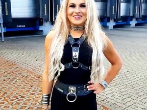 Seductive blonde bombshell in latex and boots indulges in solo pleasure, fulfilling your fetish desires. Experience the sizzling heat of this naughty German minx now!