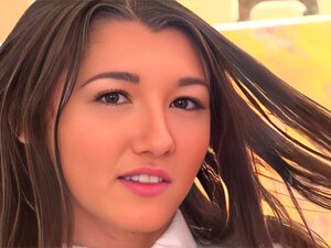 fresh dark eyed Maya Woulfe wears a schoolgirl outfit She uncovers her natural tits lacy panties bald twat and butthole Maya talks dirty masturbates squirts and tastes her juice She flashes a huge excited smile for director stud Mick Blue