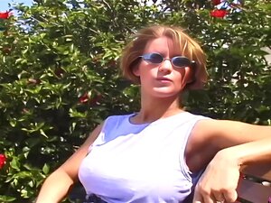 Busty Blonde MILF Being A Tease. Sexy amateur blonde woman showing off her big breasts