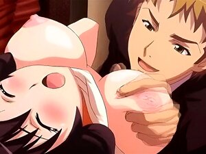 Big breasted anime schoolgirl pinches her