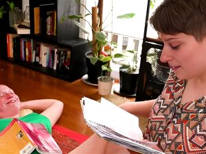 Lesbian cutie scissors GF before pussy-licking. Lesbian cutie scissors GF before pussy licking in sapphic couple