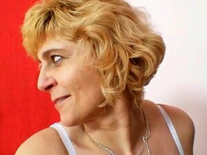 Sexy blonde Milf lesbians. Two sexy blonde Milf lesbians stripping off each other to lingerie and kissing passionately then one of them gently licking hairy pussy of other