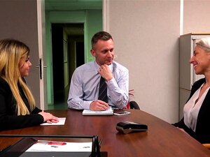 Slutty Big-booty Secretary & her Blonde Coworker Fuck their Boss