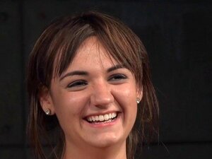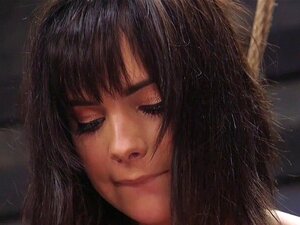 Busty slave started subbmision on Sybian. Natural busty brunette trainee slave Ashley Adams started on Sybian in tight bondage then in suspension whipped in lezdom till fucked in waist stock in the upper floor group bdsm party
